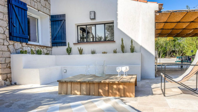 - d'un patio méditerranéen entouré de cactus, olivier et oranger idéal pour les apéritifs du soir